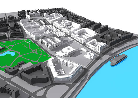 Globalno pozicioniranje centralnega mestnega jedra v odnosu na reko Donavo, ostale zgodovinsko-prostorsko-ambientalne celote, nova središča mest v nastajanju ter ostalih delov mest in predmestja