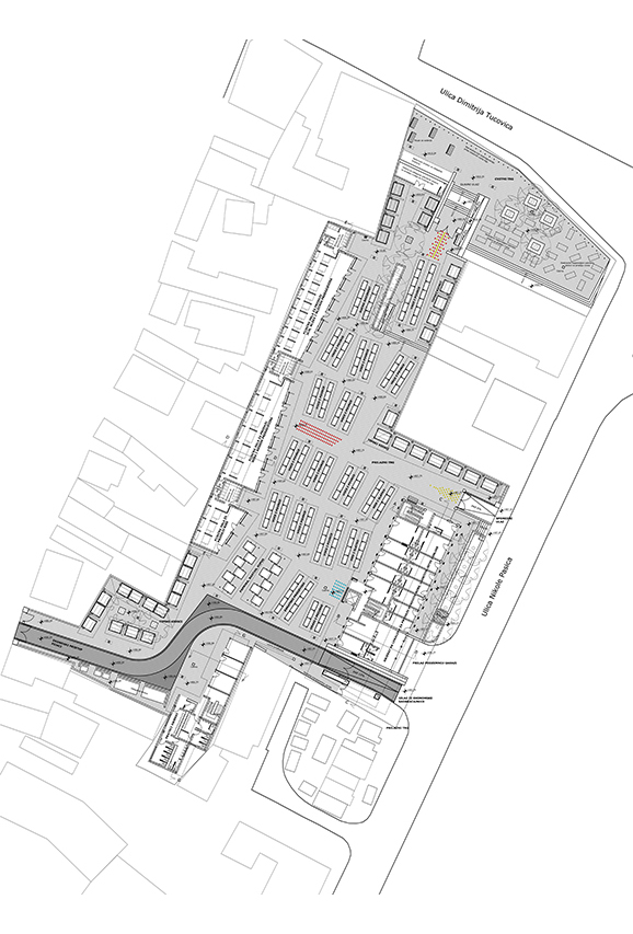 Zasnova zelene tržnice vsebuje odprti in zaprti del, oblikovanje stojnic in kioskov ter iskanje trajnostnih urbanih rešitev, ki omogočajo optimalno obratovanje tržnice in organizacijo javnih prostorov. Osnovni koncept projekta nove tržnice v Užicah, se maksimalno opira na obstoječe stanje (memorijo mesta - obstoječo ozaveščenost občanov o tej lokaciji), ter na idejo krepitve pomena obstoječih karakteristik mesta in iskanju ter dodajanju novih. Obstoječi objekti so obravnavani v kontekstu, kot izhodišče za raziskovanje forme in morfoloških značilnosti, ki so aplicirani na novo zasnovanih objektih.
